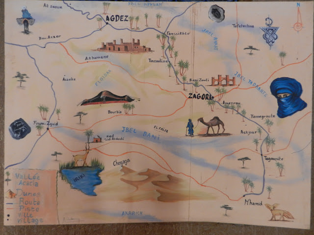 Après une marche de 15 mn j’arrive à l’hôtel Sijilmassa où l’on me propose une chambre confortable avec salle de bain pour 150 Dr que je négocie à 120 Dr.
